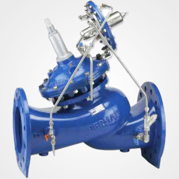 La válvula de control antirrotura modelo 790-M es una válvula de control de operación hidráulica, accionada por diafragma, que al percibir caudales mayores que los prefijados, se cierra herméticamente hasta que se la reponga manualmente. Mientras el caudal sea menor que el máximo predefinido, la válvula permanece completamente abierta, minimizando la pérdida de carga.