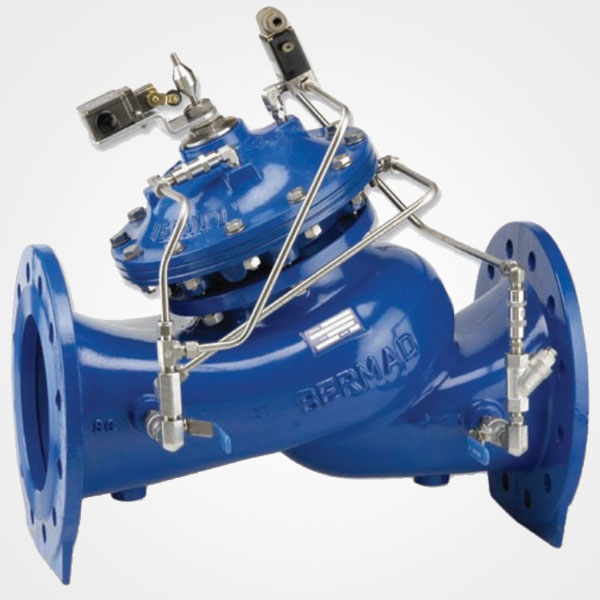 La válvula de control de bombas impulsoras modelo 740 es una válvula de retención activa de cámara doble, operación hidráulica, accionada por diafragma, que se abre completamente o se cierra en respuesta a señales eléctricas. La válvula aísla a la bomba del sistema durante el arranque y la parada, para evitar los efectos de la sobrepresión en la tubería.