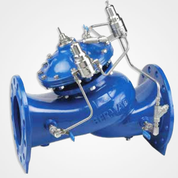 La válvula reductora y sostenedora de presión Modelo 723 es una válvula de control de operación hidráulica, accionada por diafragma, con dos funciones independientes. Sostiene una presión mínima predeterminada aguas arriba, sin que le afecten las fluctuaciones de caudal o de presión aguas abajo, e impide que la presión aguas abajo se eleve por encima del máximo predefinido, sin que le afecten las fluctuaciones en los caudales ni el aumento excesivo de la presión aguas arriba.