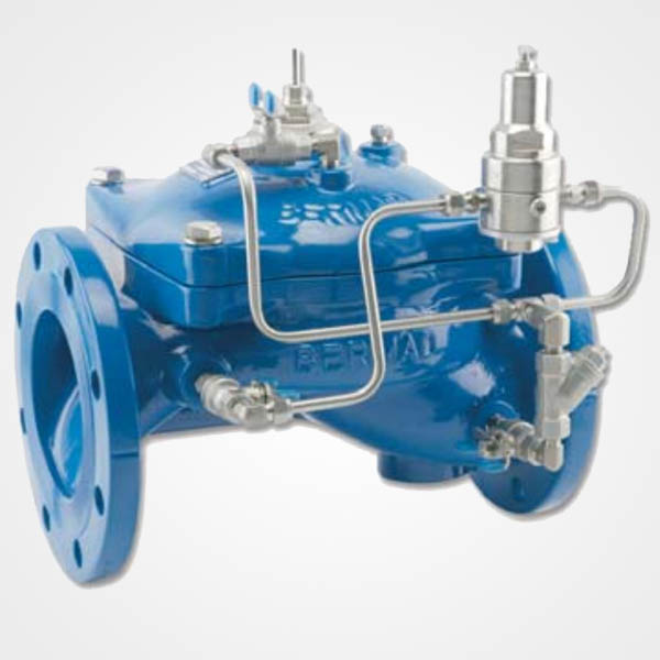 Válvula de alivio/sostenedora de presión, de operación hidráulica, que puede cumplir cualquiera de las dos funciones siguientes: Intercalada en la línea, sostiene una presión mínima predeterminada aguas arriba (retropresión), sin que le afecten las fluctuaciones de caudal o de presión aguas abajo. Si se instala como válvula de circulación, «derivada de la línea”, alivia las presiones excesivas en la línea, superiores a la máxima predeterminada. Las válvulas de la serie 400 de BERMAD son válvulas en forma de globo de operación hidráulica, sencillas y fiables, con un cuerpo hidrodinámico y una cavidad totalmente libre de obstrucciones para una trayectoria de flujo sin interferencias y excelente funcionamiento. El conjunto vulcanizado del diafragma desplegable y equilibrado con un resistente disco de cierre radial actúa como la única pieza móvil de la válvula.
