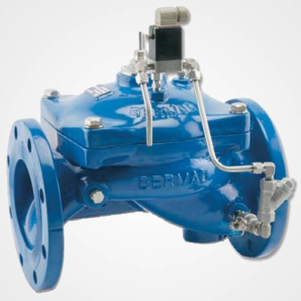 Válvula controlada por solenoide de operación hidráulica que se abre completamente o se cierra en respuesta a una señal eléctrica. Disponible en varios modelos, inclusive Normalmente abierta (NO), Normalmente cerrada (NC) o bien Última posición (LP) Las válvulas de la serie 400 de BERMAD son válvulas en forma de globo de operación hidráulica, sencillas y fiables, con un cuerpo hidrodinámico y una cavidad totalmente libre de obstrucciones para una trayectoria de flujo sin interferencias y excelente funcionamiento.El conjunto vulcanizado del diafragma desplegable y equilibrado con un resistente disco de cierre radial actúa como la única pieza móvil de la válvula