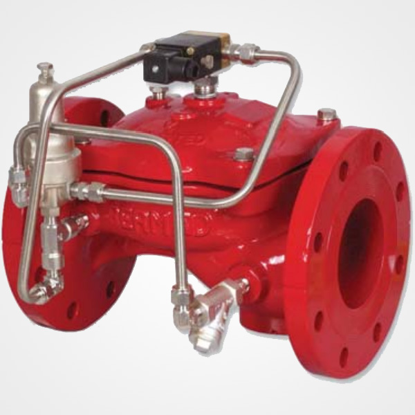 Válvula de alivio/sostenedora de presión, de operación hidráulica, que puede cumplir cualquiera de las dos funciones siguientes: Intercalada en la línea, sostiene una presión mínima predeterminada aguas arriba (retropresión), sin que le afecten las fluctuaciones de caudal o de presión aguas abajo. Si se instala como válvula de circulación, alivia las presiones excesivas en la línea, superiores a la máxima predeterminada. La válvula viene equipada con un dispositivo de preferencia de operación eléctrica de apertura completa, activado por una señal de control externa. Las válvulas de la serie 400 de BERMAD son válvulas en forma de globo de operación hidráulica, sencillas y fiables, con un cuerpo hidrodinámico y una cavidad totalmente libre de obstrucciones para una trayectoria de flujo sin interferencias y excelente funcionamiento. El conjunto vulcanizado del diafragma desplegable y equilibrado con un resistente disco de cierre radial actúa como la única pieza móvil de la válvula.