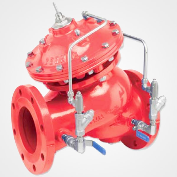 Válvula de retención de cámara doble con prevención del golpe de ariete, de operación hidráulica y accionada por diafragma. Durante el funcionamiento del sistema, cuando la presión aguas arriba es superior a la presión aguas abajo, la válvula permanece completamente abierta. Si se invierte la relación de presiones, la válvula se cierra herméticamente para prevenir el reflujo. Las velocidades de cierre y apertura de la válvula son controlables y se ajustan en el sitio de la instalación. Las válvulas de la serie 700 de BERMAD son válvulas en forma de globo, de operación hidráulica, que se presentan en la forma estándar oblicua (Y) o en diseño angular (A). Tienen un cuerpo hidrodinámico para una trayectoria de flujo sin interferencias; el conjunto del asiento y actuador de cámara doble puede desmontarse fácilmente del cuerpo de la válvula como una pieza integral.