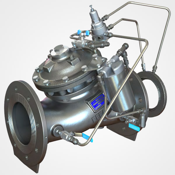 Válvula de control de caudal de operación hidráulica, que mantiene un caudal máximo prefijado sin que le afecten las fluctuaciones en la demanda o en la presión del sistema. Las válvulas de la serie 700 de BERMAD son válvulas oblicuas en forma de globo, de operación hidráulica y accionadas por piloto, con un conjunto de asiento y actuador de cámara doble que puede desmontarse del cuerpo como una pieza integral. El cuerpo hidrodinámico de la válvula ha sido diseñado para una trayectoria de flujo sin obstrucciones con alta y efectiva capacidad de modulación para aplicaciones con grandes diferencias de presión. Las válvulas de la serie 700 funcionan en duras condiciones, con mínimo riesgo de cavitación y bajo nivel de ruido. Se fabrican con materiales de la más alta calidad, adecuados para aplicaciones de minería.