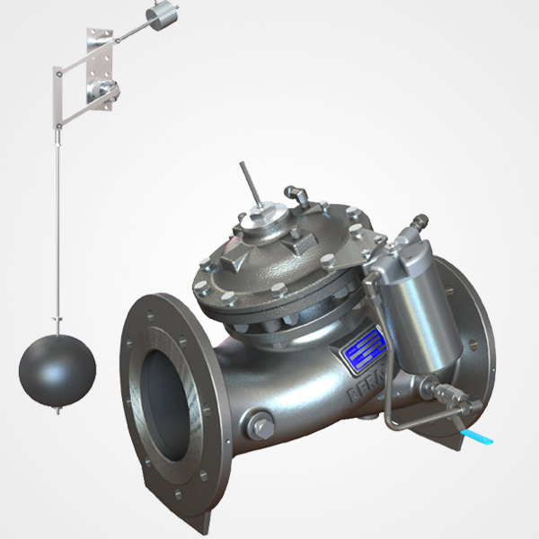 Esta válvula de control de operación hidráulica, accionada por diafragma, controla el llenado y el nivel de un depósito (reservorio). El depósito se llena en respuesta a un flotador vertical de dos niveles, no modulante, de accionamiento hidráulico, que se abre al nivel inferior predefinido y se cierra herméticamente al nivel superior predefinido. Las válvulas de la serie 700 de BERMAD son válvulas oblicuas en forma de globo, de operación hidráulica, con un conjunto de asiento y actuador de cámara doble que puede desmontarse del cuerpo como una pieza integral. El actuador de cámara doble propulsa a la válvula para que se abra totalmente y se cierre aun con presiones muy bajas. El cuerpo hidrodinámico de la válvula ha sido diseñado para una trayectoria de flujo sin obstrucciones con alta capacidad de caudal. Las válvulas de la serie 700 funcionan en duras condiciones, con mínimo riesgo de cavitación y bajo nivel de ruido. Se fabrican con materiales de la más alta calidad, adecuados para aplicaciones de minería.