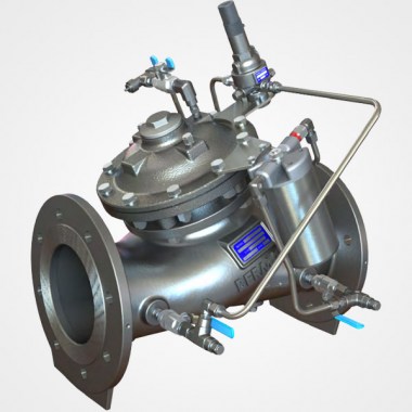 Válvula auto-operada hidráulicamente, sostenedora de presión utilizando la propia fuerza de la línea para aliviar excesos de presión cuando esta alcanza los seteos máximos. Responde a picos de presión en el sistema de manera inmediata, precisa y con alta repetición para apreturas máximas. El diseño libre de obstrucciones permite un alto paso de flujo y una efectiva capacidad de modulación ante grandes diferenciales de presión.